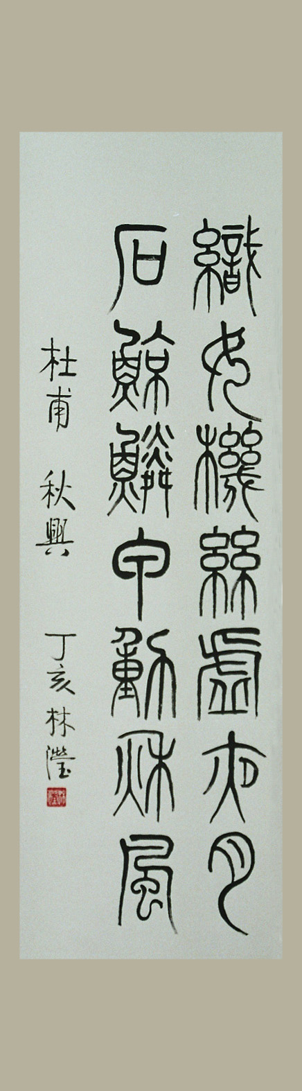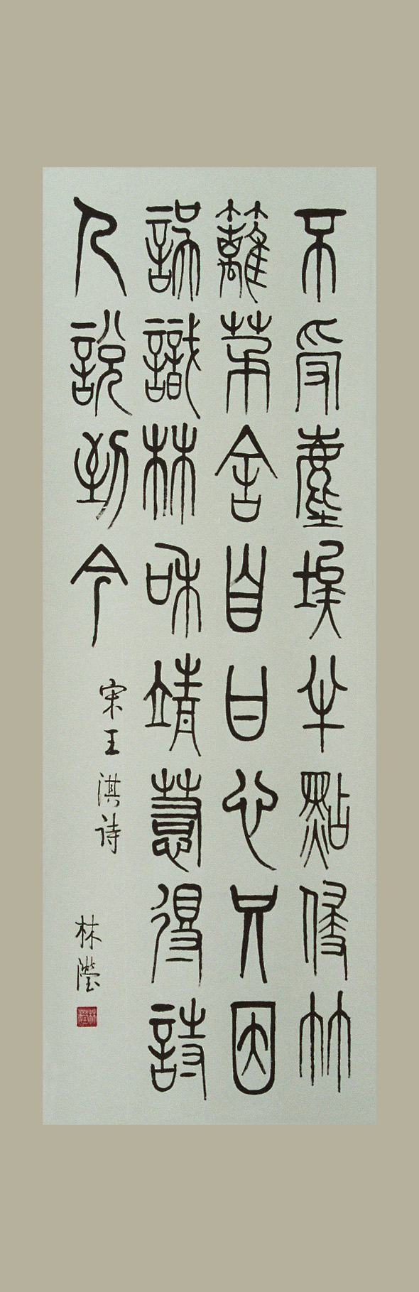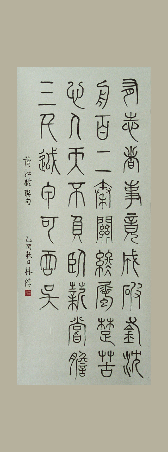 小篆又稱秦篆, 為秦朝丞相李斯等人所整理出的標準字体. 小篆的形体體結構規整拹調, 筆勢匀圓整齊, 偏旁也作了改換歸併.